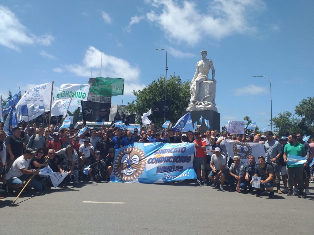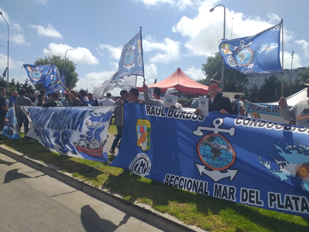 Poco antes de las 11 de la mañana ya se encontraba un nutrido grupo de manifestantes, a los que se le sumaron minutos después trabajadores y dirigentes a nivel local y nacional de todos los gremios que nuclean a las actividades portuarias.