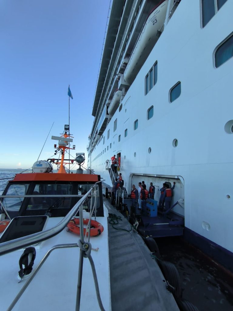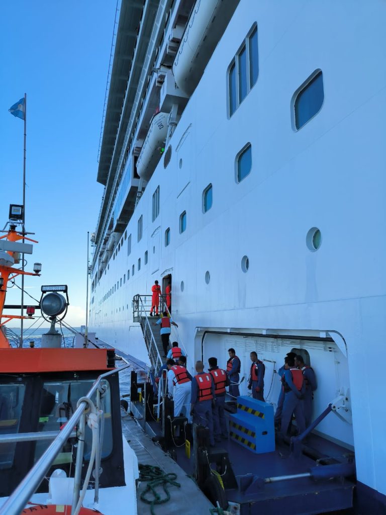 La lancha de prácticos “Gitán”, propiedad de la empresa MDP Port Management, partió desde su apostadero en la Base Naval Mar del Plata con un médico de Prefectura y dos rescatistas para evacuar al pasajero de 85 años de nacionalidad estadounidense, mientras en el apostadero de la Base Naval, lo esperaba una ambulancia, tras lo cual fue trasladado a un nosocomio privado de la ciudad de Mar del Plata.