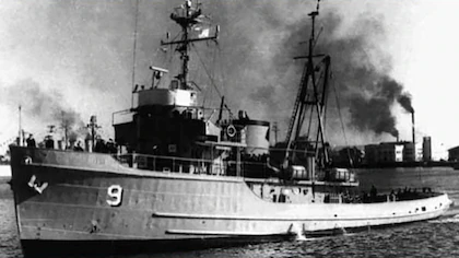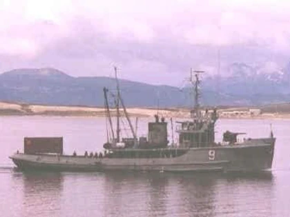 Minutos antes a liberar amarras para el hundimiento del ARA Alférez Sobral