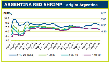 En cuanto a langostino, la generosa oferta del Argentine Red en el mercado europeo hizo que el precio declinara unos 0,10 euros por kilo en los tamaños más grandes, mientras que el de los más pequeños mantuvo cierta estabilidad.