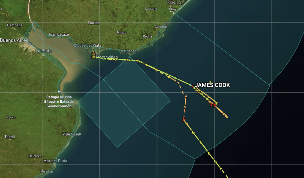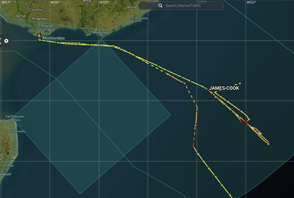 El 30 de diciembre de 2024, el buque británico de investigación científica RRS James Cook hizo contacto con el puerto de Montevideo tras el rechazo de Argentina a permitirle realizar estudios oceanográficos en aguas del Atlántico Sur. Este movimiento reafirma el rol de Uruguay como un punto clave para operaciones logísticas de flotas extranjeras y, más recientemente, para maniobras de buques de investigación científica, como lo demuestra en esta oportunidad.