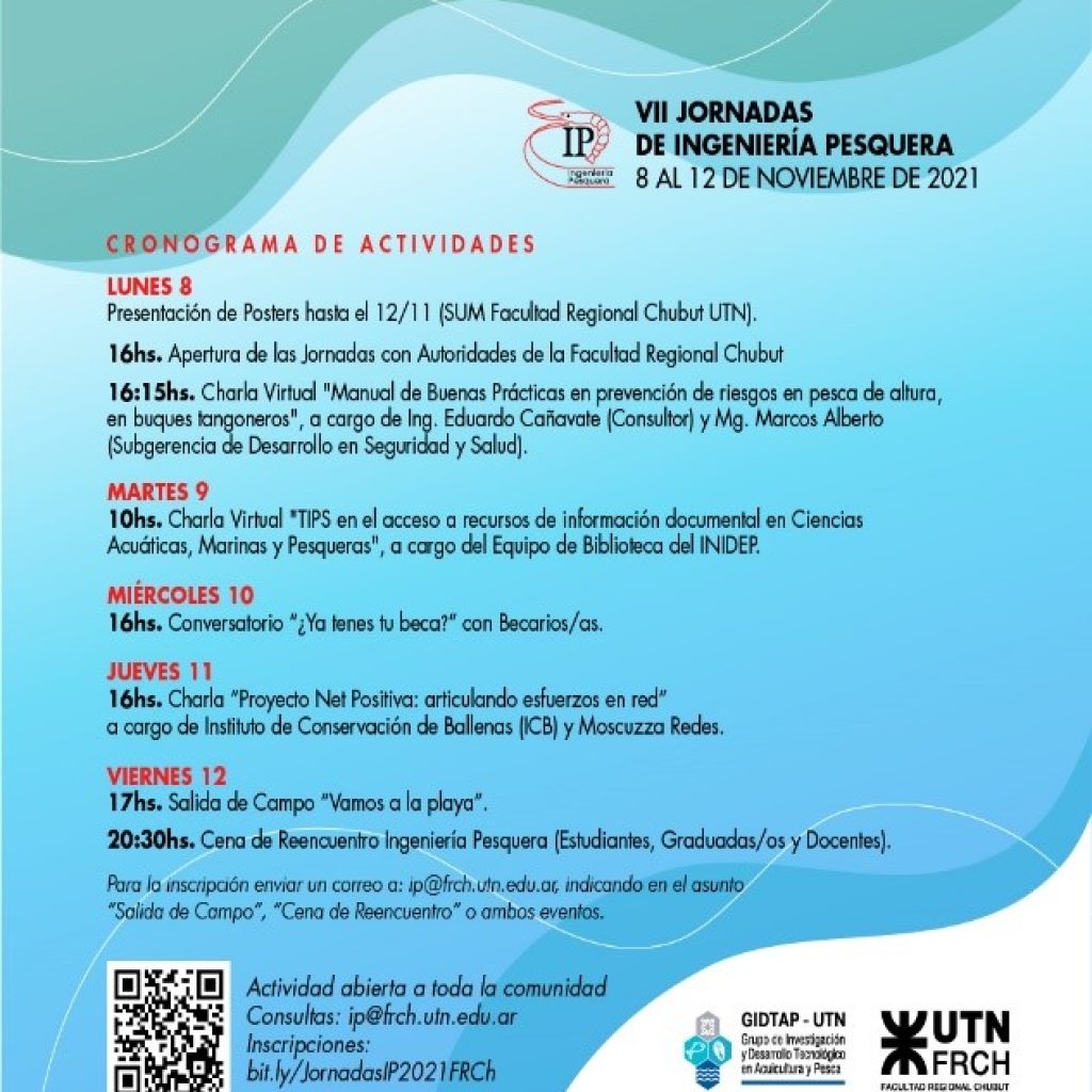 La actividad de ayer, jueves –finalizan las jornadas hoy viernes- estuvo a cargo del Dr. Martín García Asorey (Docente de la UTN-FRCH), Soraya Corbalan (INIDEP-UTN), Roxana Schteinbarg (ICB), Camila Muñóz Moreda (Bióloga), Luis D. Georgetti (Artes de Pesca) y Diego Taboada (Presidente del ICB), en lo referida a las cuarta jornada.