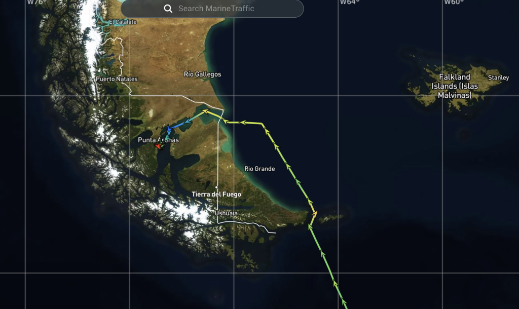 Tras su paso por el Atlántico Sur, el Sir David Attenborough se dirigió hacia Punta Arenas, Chile, donde permaneció por varios días para realizar operaciones logísticas y el recambio de su tripulación, antes de continuar su curso hacia el Mar de Weddell, en la Antártida.