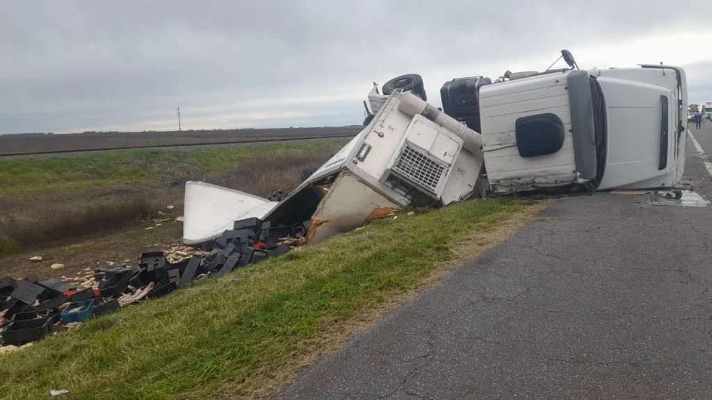La crónica en medios marplatenses dan cuenta de un siniestro vial en la Autovía 2 a la altura de la localidad de Gral.Pirán km.331, donde un camión semirremolque refrigerado por circunstancias que las autoridades aún intentan esclarecer a plena luz de día, vuelca en la banquina al costado de la ruta sin consecuencia mayores para el conductor.