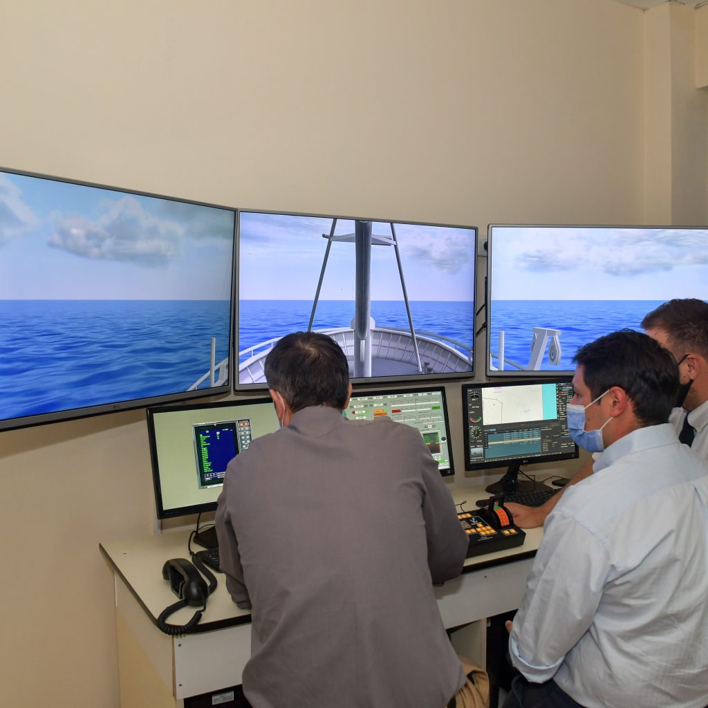 Esta escuela es meramente “práctica”, acá hay aulas donde están los motores y los alumnos “meten mano en el motor”, hay soldadoras donde el alumno suelda, hay simuladores donde el alumno tiene que trabajar, primero en computadoras, pero tiene que estar en el simulador. Después se tiene que embarcar y es cuando aparece el patrón del pesquerito el “Luisito” donde reclama que le golpearon el barco, pero eso es porque están aprendiendo.
