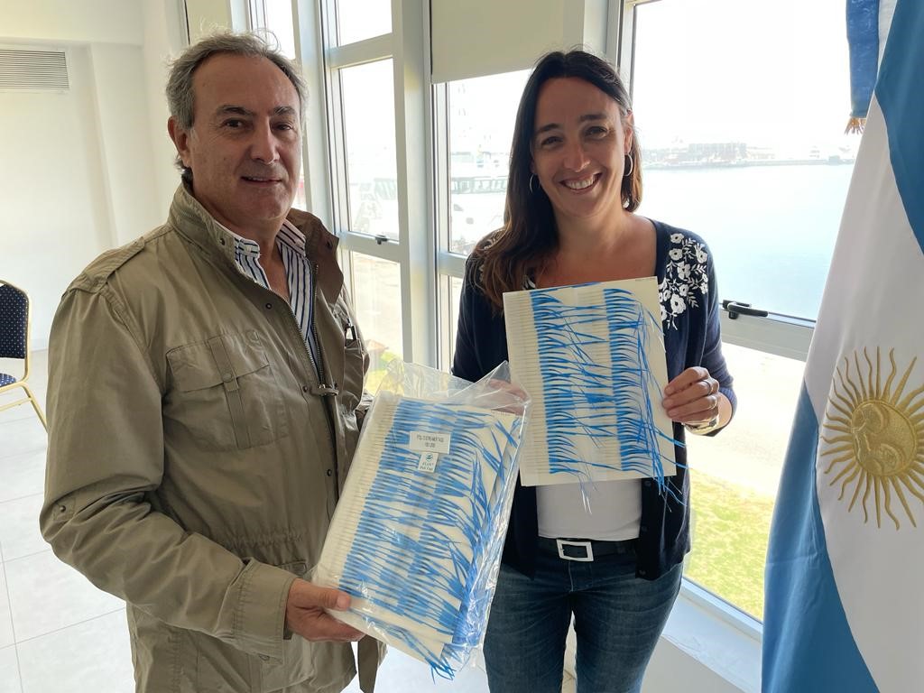 La receptora de la donación fue la Dra. Claudia Carozza, Directora Nacional de Investigación y la Lic. Paula Moriondo Danovaro quien es jefa del Programa de Pesquería de Langostino. Moriondo, hace muy pocos días fue una de las disertantes en las jornadas sobre “La calidad comienza a bordo” y que se refería a la pesca de langostinos.